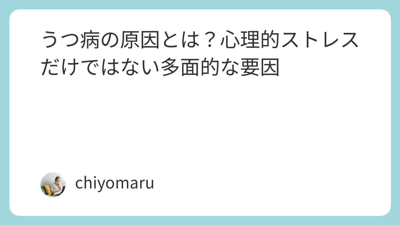 うつ病は、心理的、社会的、そして生物学的な要因が絡み合って発症する病気です。心理的ストレスが発症の一因となることは確かですが、それだけがすべてではありません。さまざまな要因が複雑に絡み合っていることを理解し、早期の適切な治療や支援が求められます。