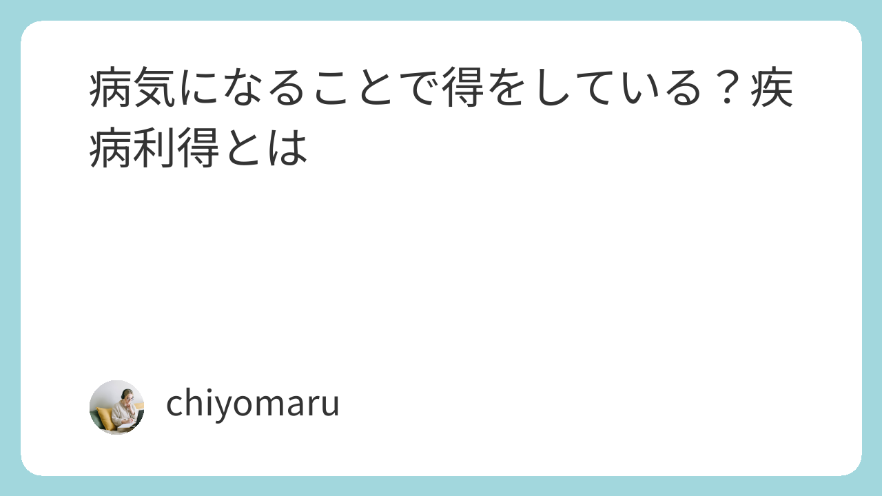 精神疾患や体の病気に関連して生じる「疾病利得(しっぺいりとく)」とは、病気を抱えることによって得られる心理的・社会的な「利益」を指します。