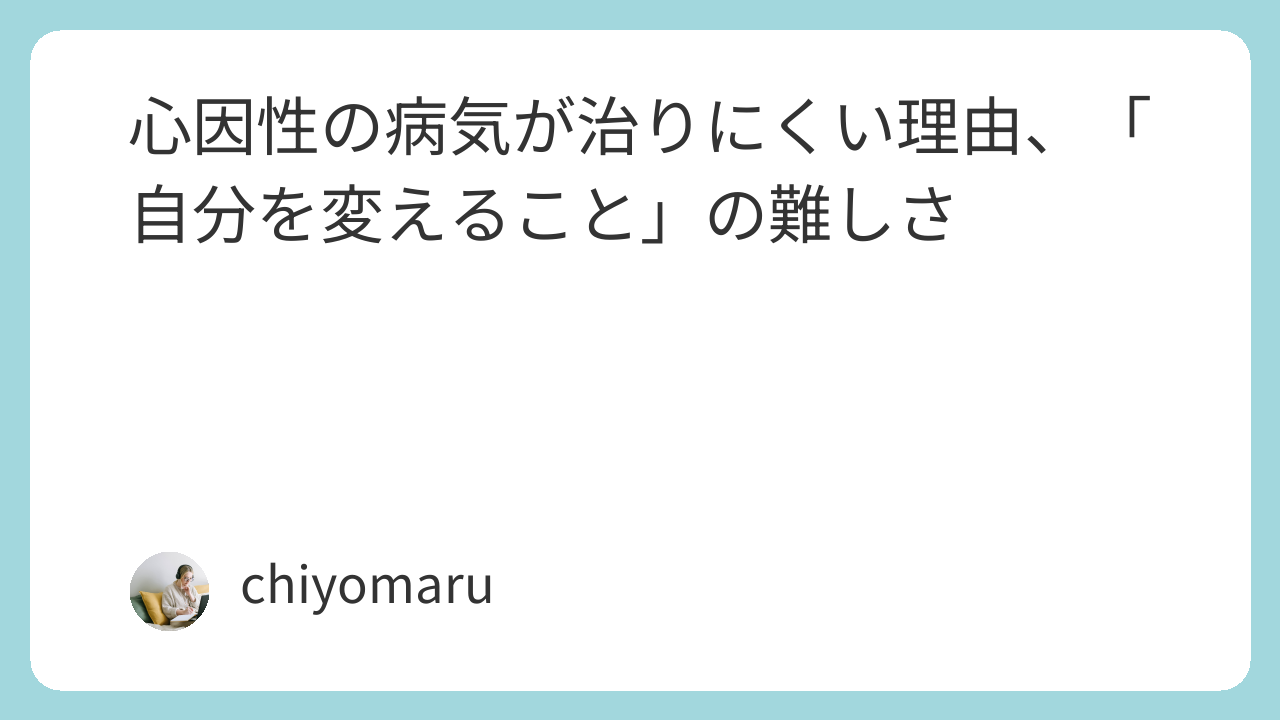 心因性の病気が治りにくい理由、「自分を変えること」の難しさ
