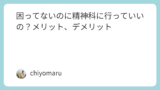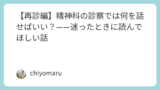 初めから精神疾患と考えず、体の病気ではないか調べておいた方がいいということです。というのは、精神科に行っても、身体症状がある場合などに内科の受診などを勧められることもあるからです。二度手間にならないように予め受診することを考えてもいいと思います。