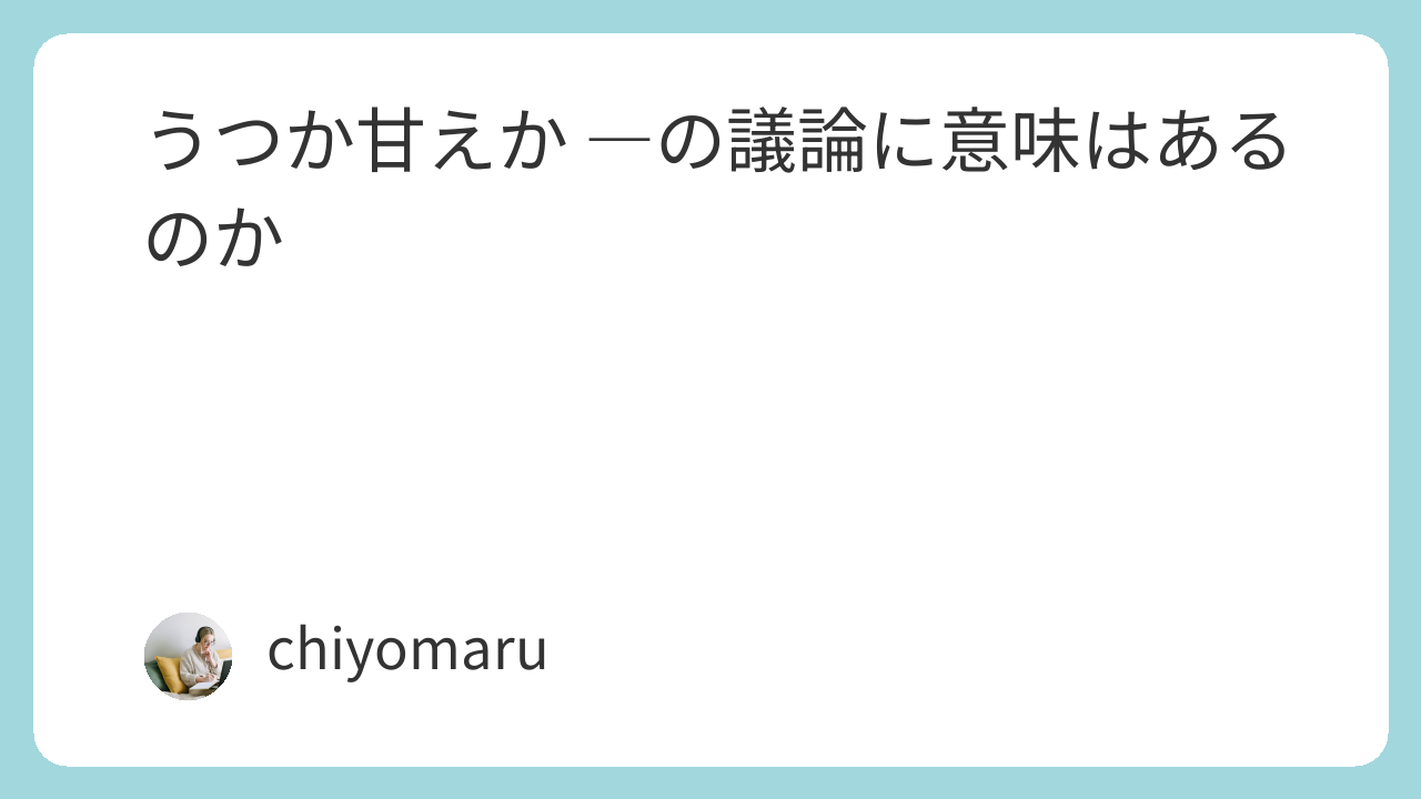 甘えと言われることを過剰に恐れて甘えないことを意識しすぎているうつ病の人たちが、うつか甘えかの議論から抜け出せるように願います。