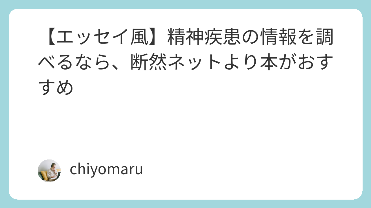 精神疾患について調べようとすると、まずはネット検索から始める人が多いと思います。確かにネットは便利です。