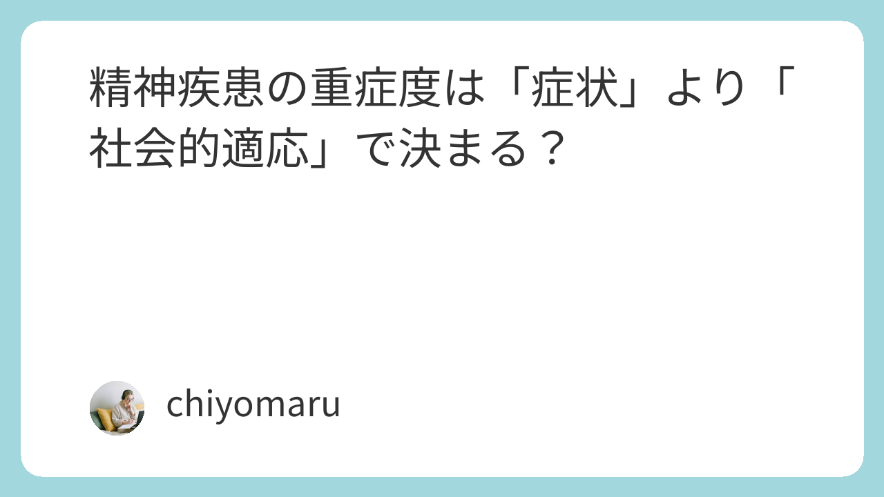 精神疾患の重症度は「症状の派手さ」ではなく、どれだけ社会に適応できているか、生活を維持できているかで決まります。